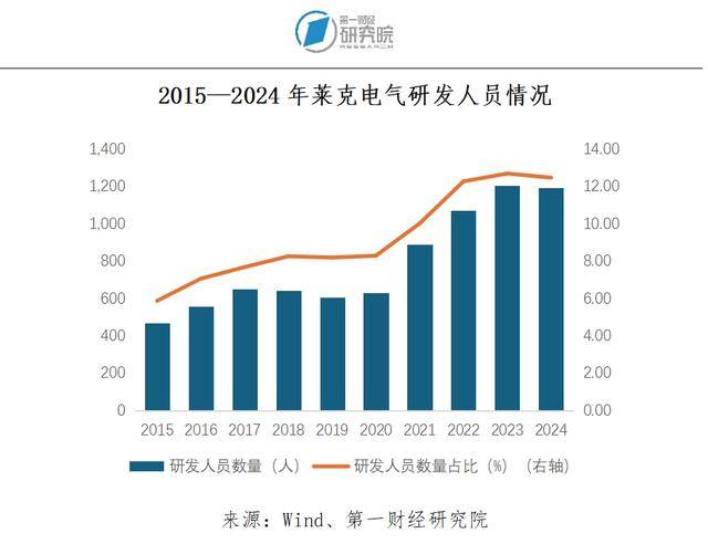 产品创新是莱克电气经营的根本之一。为了保持企业的创新能力,2020-2024年,莱克电气的研发投入均超过了3亿元,研发人员数量规模均超过了600人。企业自创立之初就重视设计研发团队的建设,2024年时,研发人员数量占比高达12.47%。