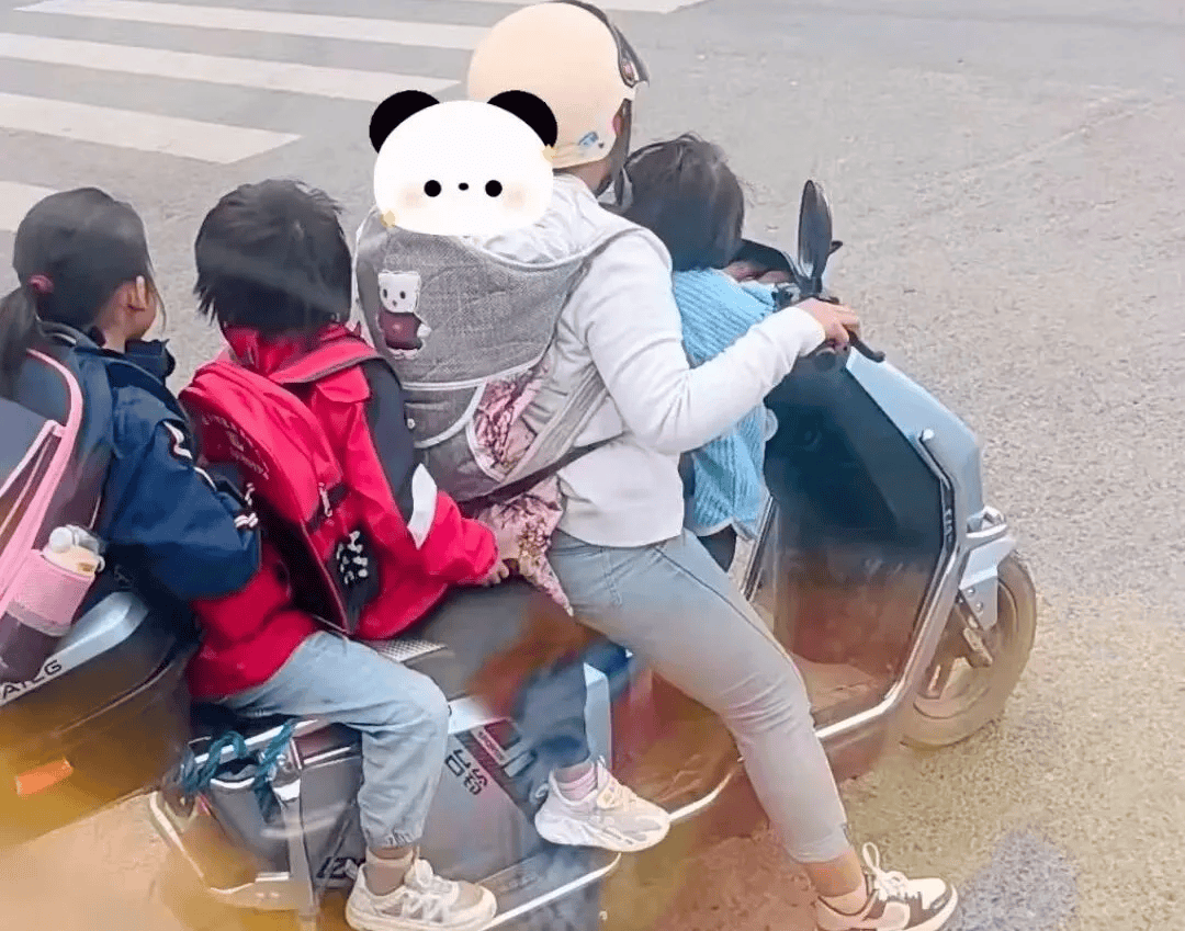 家长驾驶电动车接送学生时,必须严格遵守交通法规,只能搭载1名12周岁以下的儿童,严禁搭载成年人或超员搭载。