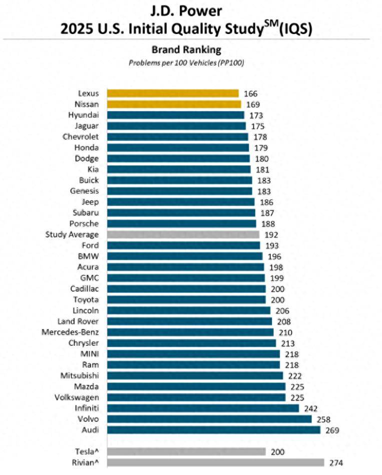 MK,MK体育,MK体育官网,MK体育app,MK体育网址好吧,漫哥承认标题党了。根据J.D.Power最新的2025美国新车质量排行榜,行业百辆问题数(PP值,越少越好)均值为192,均值以上的13个品牌,漫哥上期图文已经给大家一一介绍过了,今天继续吹水剩下的均值以下的20个品牌。而整个榜单中,确实是没有中国品牌上榜,毕竟目前还进不去。