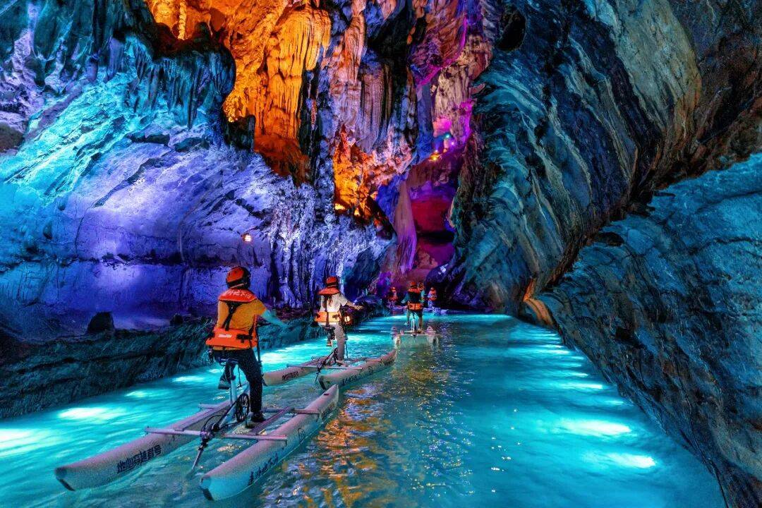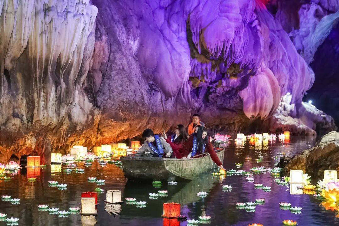 在五彩灯光映照下,洞中石笋如林、钟乳垂挂,游客们泛舟地下暗河,穿行于“洞中有洞、洞中有河、洞中有桥、洞中有瀑布”的奇幻秘境。来自佛山的摄影爱好者黄女士频频举起相机拍摄:“走了这么多溶洞,连州地下河的气势和完整性确实罕见。穿越地下河道的那一刻,感觉就像在地心探险,特别震撼。”