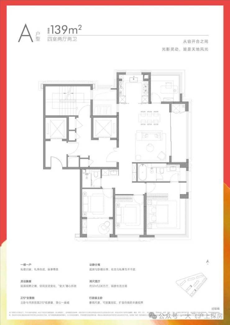项目首推建面约117-139㎡3-4房,你想要的“类独立电梯厅”、“双阳台高实得率”、“大面宽”、“270°灵动飘窗”等应有尽有。
