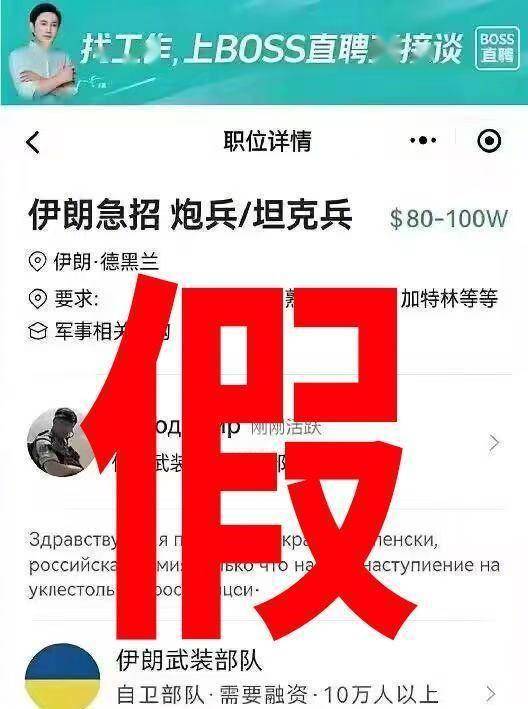 3月1日消息,近日,美国和以色列对伊朗发动突袭,伊朗随即展开大规模导弹反击,中东紧张局势引发关注。在此期间,网上流传出“伊朗急招炮兵/坦克兵”图片。从照片显示内容来看,招聘部门为伊朗武装部队,显示招聘渠道为BOSS直聘。对此,据报道,BOSS直聘相关人士回应称:“确认是假的,P图”。(鞭牛士)