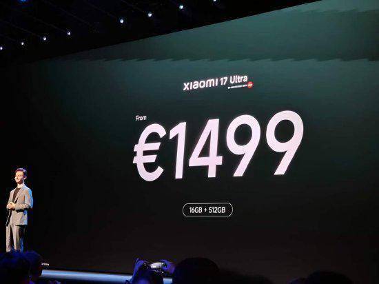 2月28日晚间消息,Xiaomi 17 Series全球发布会在西班牙巴塞罗那举行。会上,小米17 Ultra在国际正式亮相发布,16GB运行内存和512GB机身存储版本,起售价为1499欧元(约合人民币12141.9元)。作为对比,同款小米17 Ultra在京东官方旗舰店最新价格为6999元。