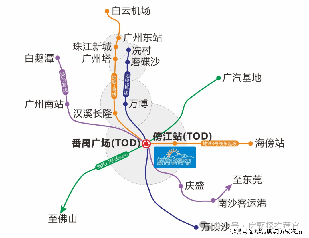 更为令人振奋的是,金海岸花园周边汇聚了五条地铁线路的磅礴力量。三号线作为广州的大动脉,串联起番禺广场、长隆旅游度假区、客村、广州塔、珠江新城、天河北直至机场,是连接城市南北的黄金走廊。三号线东延线则进一步向东延伸,经过金海岸花园所在的傍江站,直通石基、海傍乃至莲花山板块,极大地拓展了城市的东部版图。规划中的十七号线将佛山、番禺广场、广汽基地与莲花湾板块紧密相连,为广佛同城化注入了新的活力。十八号线作为高速地铁,从南沙出发,经番禺广场、万博、琶洲直抵珠江新城冼村,让远距离通勤变得如同市内穿梭般轻松。二十二号线则连接缤纷汇、番禺广场、广州南站、白鹅潭和芳村,构建了另一条贯穿城市东西的快速通道。