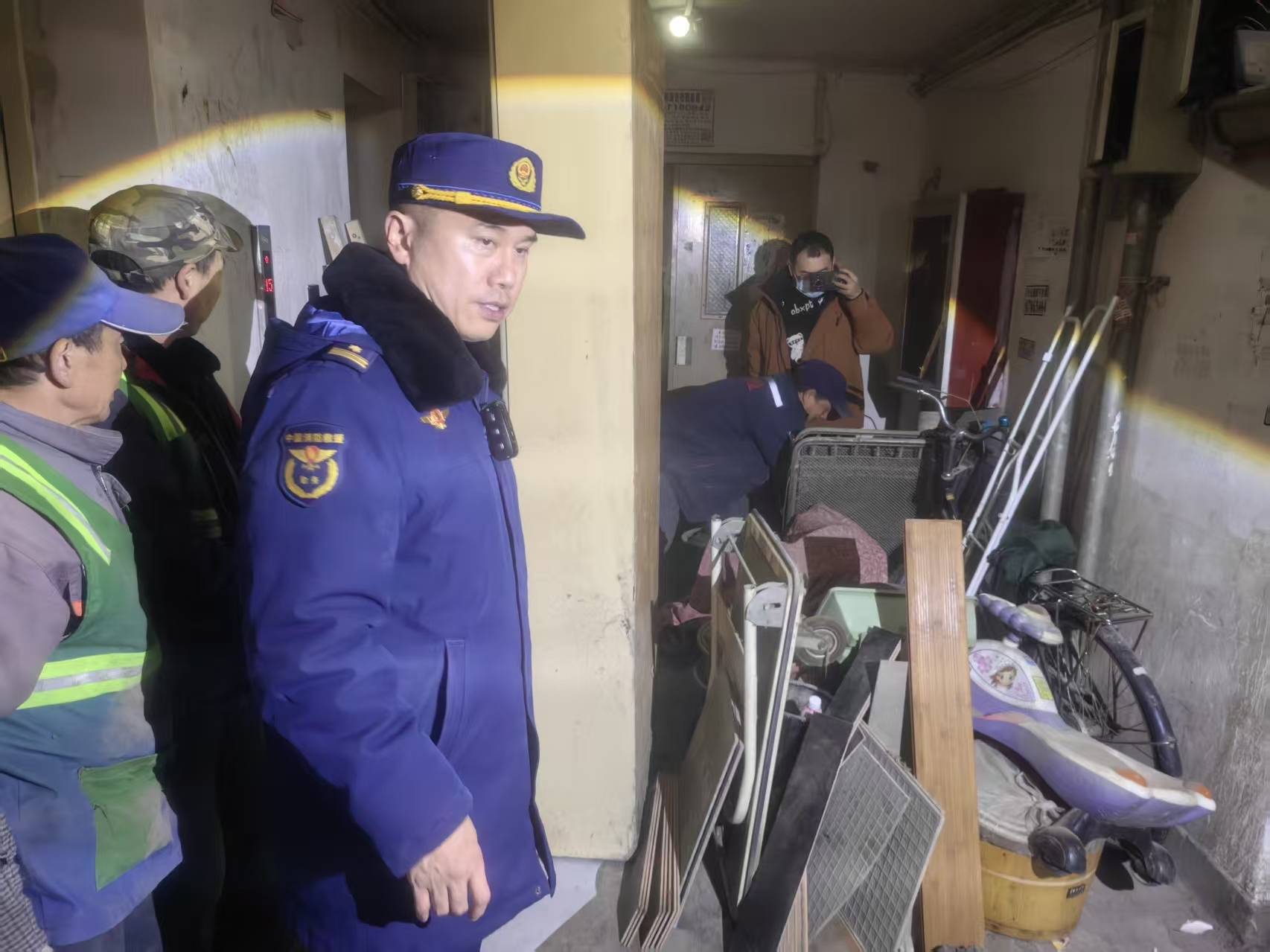在大红门街道,检查组深入楼栋单元开展“敲门行动”,重点围绕疏散通道堆放可燃杂物、违规停放电动自行车、私拉乱接“飞线充电”等突出隐患,坚持边查边改、立整立改。当晚,检查组累计出动131人次,巡查楼栋单元61个,入户检查744户,清理堆积物品93处、共计7车15吨,排查并整改车棚安全隐患90余处,有力净化了辖区消防安全环境。